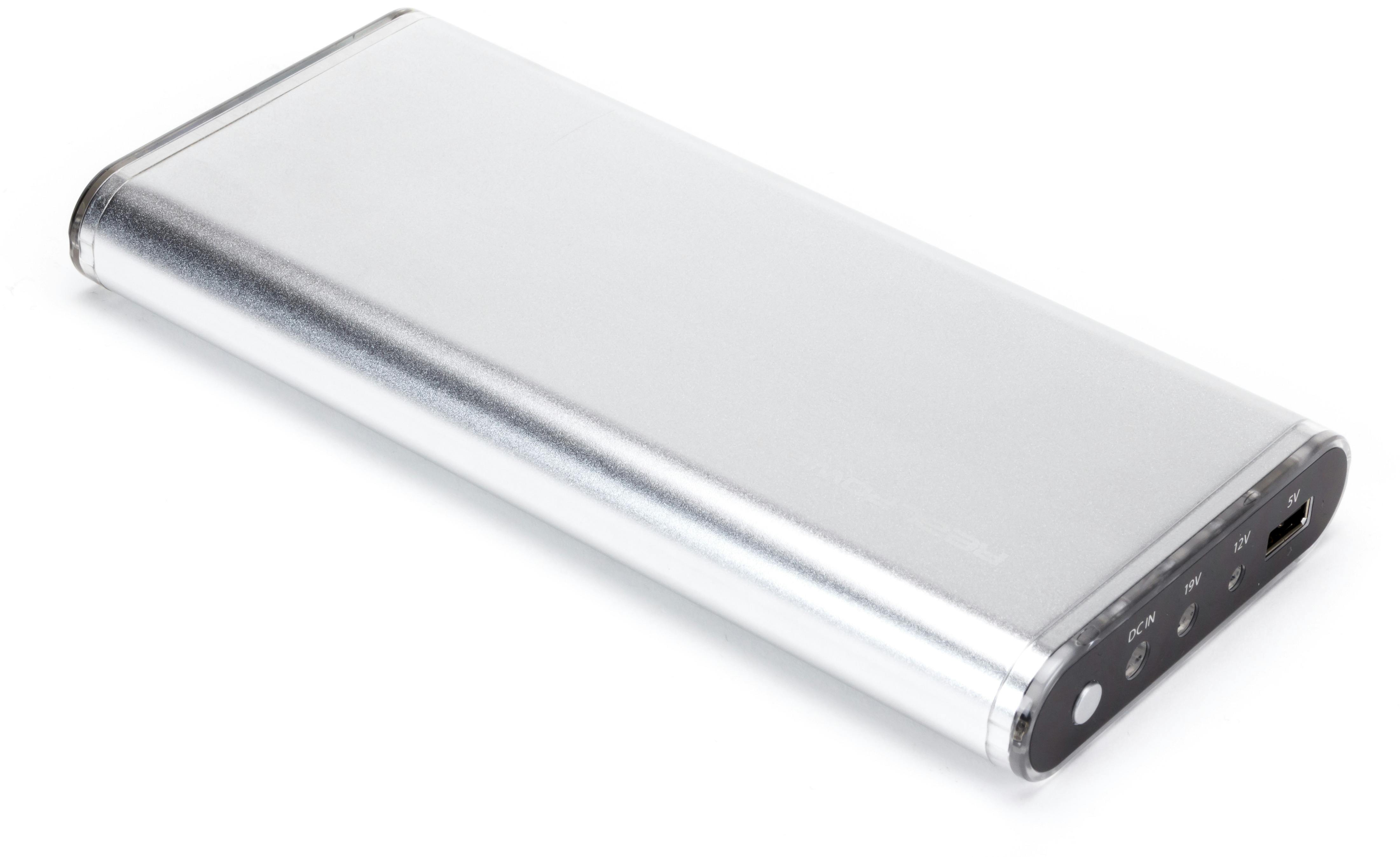 Anders is dat met de Ultron Real Power PB-20800. Deze uit de kluiten gewassen powerbank meet 19,6 x 9,2 x 2,2 centimeter en weegt maar liefst 641 gram. Daar staat echter wel wat tegenover. Naast een 5 volt usb-uitgang om smartphones en tablets te laden, beschikt het apparaat ook over 12 en 19 volt-aansluitingen voor notebooks, waarbij tot drie ampère stroom geleverd kan worden. Het apparaat wordt bovendien geleverd met een hele berg stekkers, waardoor hij gebruikt kan worden met vrijwel alle gangbare notebooks. Onze labtest leert dat de powerbank ruim 64Wh aan capaciteit kan leveren: ruim voldoende om een gemiddelde notebook helemaal op te laden. Goedkoop is de PB-20800 echter niet, het apparaatje kost zo’n 120 euro.
