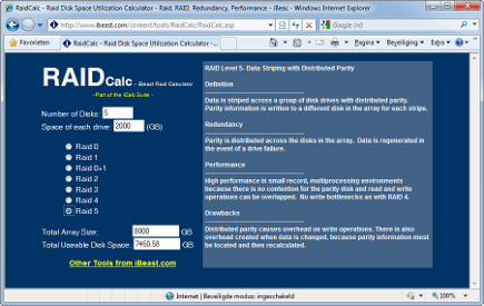 Bereken online de efficiëntie van een combinatie van schijven en RAID.
