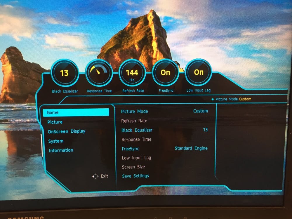 In de praktijk is de framerate zelfs bij een krachtige grafische kaart niet altijd constant, zakt de framerate onder de verversingssnelheid van het scherm, dan krijg je tearing: een duidelijk zichtbare breeklijn in de rendering van het beeld. Je kunt tearing voorkomen door de refresrate van je grafische kaart vast te zetten op een vaste frequentie (v-sync), maar op 144 Hz is dat een vrijwel onmogelijke opgave. Om dit netjes op te lossen biedt Samsung ondersteuning voor AMD’s FreeSync. Dit is technologie die ervoor zorgt dat een spel bij een wisselende framerate toch een vloeiend beeld zonder tearing toont. FreeSync doet dit door de verversingssnelheid van het beeldscherm dynamisch aan te passen aan de actuele framerate van het spel. Zakt je framerate bijvoorbeeld in van 144 naar 100 frames per seconde, dan wordt het beeldscherm ook op 100 Hz aangestuurd. Het voordeel hiervan is dat je indien mogelijk de beste framerate gebruikt, terwijl alles bij dipjes ook nog vloeiend loop.