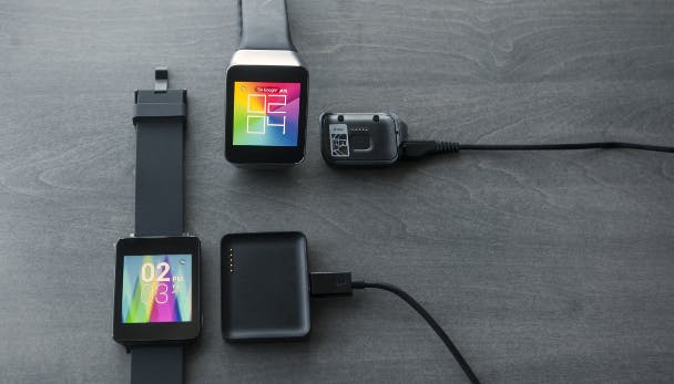 Het grootste struikelblok van een degelijke smartwatch is en blijft de batterij. We willen zoveel mogelijk functies maar hebben geen zin om het horloge dagelijks op te laden. De 300 mAh-batterij van de Gear Live is volgens de fabrikant voldoende krachtig voor één dag gebruik of zelfs twee dagen als je de energiebesparende functie inschakelt. Tijdens onze test viel echter op dat één dag - bij intensief gebruik - al moeilijk haalbaar was. En dat is een tegenvaller. Elke nacht twee apparaten op je nachtkastje opladen is niet leuk. Bovendien kun je niet zomaar een usb-kabeltje in de smartwatch stoppen maar heb je een speciaal hulpstukje nodig. Zo'n klein onding dat je wellicht ooit eens kwijtraakt.