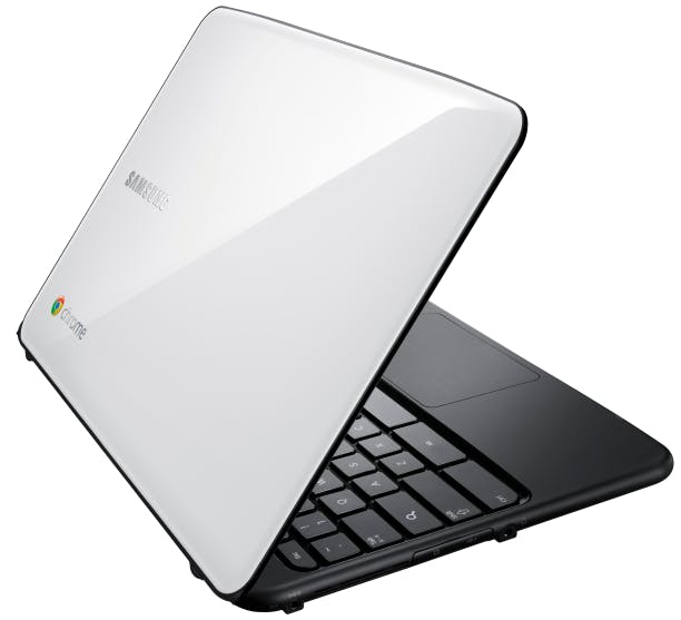 Aan de Samsung Series 5 is direct te zien dat dit een bijzondere notebook is, want behalve het logo van Samsung prijkt er ook een logo van Google Chrome op het deksel. Dit is dan ook de eerste commercieel verkrijgbare notebook die op Googles Chrome OS draait. De behuizing van de Samsung Series 5 is erg goed afgewerkt. De notebook is dun, licht en komt stevig over. Het 12,1inch-scherm heeft een resolutie van 1280 x 800. Opvallend aan het scherm is de hoge helderheid en het feit dat het een mat scherm is. De specificaties van de Samsung Series 5 doen denken aan die van een doorsnee netbook. Zo is gekozen voor een Intel Atom N570, een dualcore-processor op 1,66 GHz in combinatie met 2 GB geheugen. Geen heel krachtige machine dus. Opvallend is dat er een 16 GB SSD is ingebouwd voor de opslag. Dat de notebook niet op Windows draait, is ook te zien aan het toetsenbord. Er is geen Delete-toets aanwezig en waar we normaal een Caps Lock-toets zien, heeft de Chromebook een knop waarmee u direct een zoekvenster opent. Het is via de instellingen ook mogelijk om de toets als Caps Lock in te stellen. De bovenste rij knoppen bestaat niet uit de gebruikelijke functietoetsen, maar zijn browsertoetsen, zoals vorige pagina, herladen en volledig scherm. Ook de helderheid van het scherm en het geluidsniveau regelt u met deze knoppen.