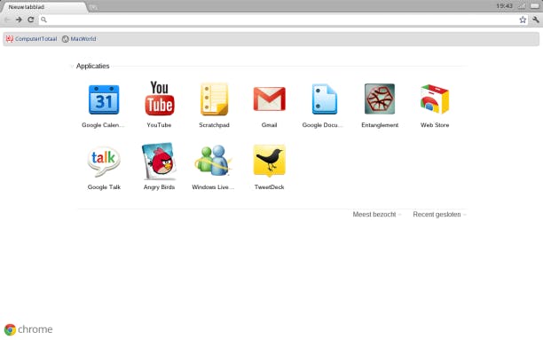 Over Chrome OS kunnen we u niet erg veel vertellen: het besturingssysteem is niets meer dan Googles browser Chrome die draait op een lichte Linux-distributie. Alle taken voert u als webapps uit in de browser zelf. Voor de meeste apps hebt u een internetverbinding nodig, zonder verbinding kunt u dus geen brief tikken in Google Docs of uw agenda raadplegen in Google Calendar. Enkele webapps, voornamelijk spellen zoals Angry Birds, zijn wel offline te gebruiken. Offline gebruik is dus technisch mogelijk, het is te hopen dat Google inderdaad (zoals beloofd) snel zijn Google Apps-diensten voor offline gebruik geschikt maakt. Op het moment dat u dit leest, zou Google zijn diensten offlien beschikbaar moeten hebben. Chrome OS heeft een bestandsbrowser waarmee u bestanden op usb-sticks, geheugenkaartjes en de lokale opslag kunt bekijken. Het blijft echter bij bekijken, want acties als kopiëren of plakken zijn niet mogelijk. Wel kunt u bestanden verwijderen. De bestandsbrowser bevat een pdf-lezer, afbeeldingenviewer en mediaspeler voor filmpjes en muziek. Bij een afbeelding ziet u een optie om hem gelijk naar Picasa te uploaden, een optie die we al nodig hadden om schermafbeeldingen naar onze Windows-computer te kopiëren. Echt handig werkt de gelimiteerde bestandbrowser vooralsnog niet. Ook onhandig, is dat printen alleen via Cloud Print kan. Enkel moderne HP-printers hebben hier ondersteuning voor. In alle andere gevallen hebt u een printer met een normale pc nodig om te kunnen cloudprinten.