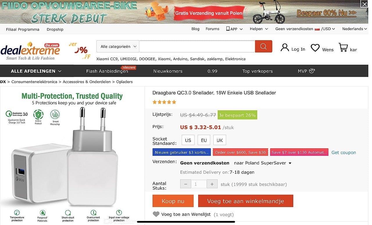 In dat laatste zinnetje hierboven zit ‘m de kern van het probleem. Je hebt vast al gemerkt dat je een schakelende voeding (in de vorm van bijvoorbeeld een telefoonlader) voor een paar Euro op eBay, bij AliBaba of de Action kunt kopen. Terwijl een merklader van bijvoorbeeld Apple, Samsung of Sony beduidend meer kost. Dat heeft alles te maken met kwaliteit en veiligheid. Bij de ultragoedkope adapters is veelal alleen de allernoodzakelijkste elektronica ingezet om een min of meer stabiele uitgangsspanning te realiseren. Vaak is bezuinigd op filters, met als gevolg dat die goedkope adapters verschrikkelijk storen op bijvoorbeeld aangesloten apparatuur, maar ook radio’s en dergelijke in de omgeving. Ernstiger is, dat de gemiddelde Chinese wegwerp-fabrikant het onderwerp veiligheid vaak volledig negeert. En dat bijvoorbeeld geen of niet voldoende scheiding is aangebracht tussen onderdelen die hoog- en laagspanning voeren. Met telkens weer trieste verhalen tot gevolg. Elektrocutie in de badkamer komt nog altijd te vaak voor. Daar zal je geen last van hebben met een correct, veilig en gecertificeerd opgebouwde adapter. Maar een goedkope Chinees kan zomaar de volle netspanning op een van de pinnen van je laadplug hebben staan. Merk je niks van, totdat je én je ladende telefoon én een geaard onderdeel in huis (verwarming, kraan, vol bad) aanraakt. Of je ladende mobiel in het bad laat vallen. Dan gaat het ineens gruwelijk mis.