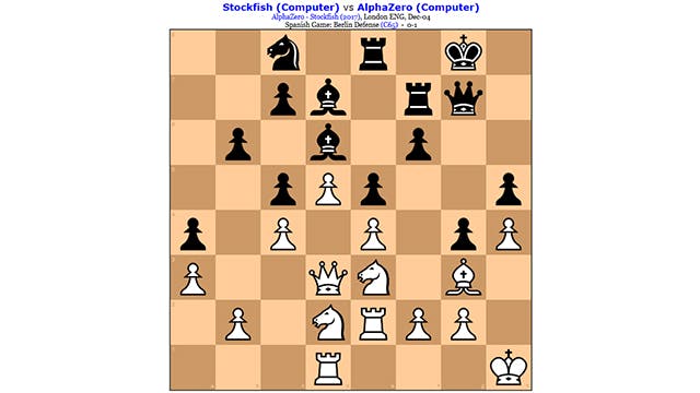 Gesterkt door deze successen richtte DeepMind (de Google-dochter achter dit succes) ook een algemener systeem in voor andere spellen, dat ze AlphaZero noemden. AlphaZero is de machine die verantwoordelijk is voor de doorbraak waarmee we ons verhaal begonnen. Door de machine een handvol uren tegen zichzelf te laten schaken, konden de makers het neurale netwerk dusdanig sterk maken dat Stockfish regelrecht werd vernederd – voor zover dat voor een programma mogelijk is.