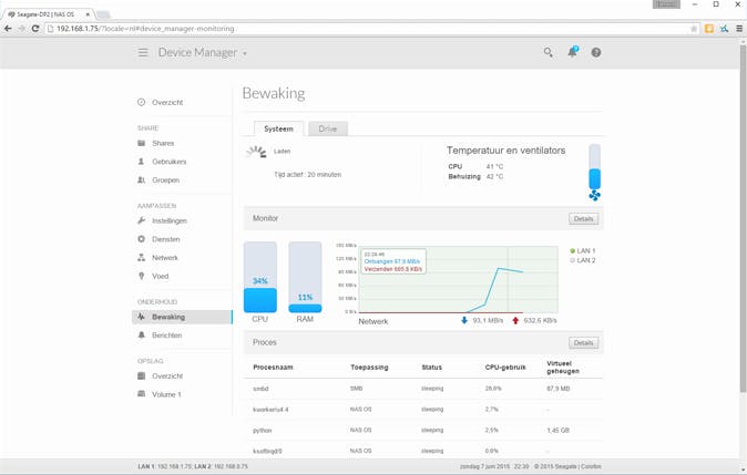 Seagate heeft design overigens niet overboord gegooid, voor een doorsnee NAS ziet de Seagate Pro 2-bay er erg mooi uit. Belangrijker is dat het NAS-platform er duidelijk beter van geworden is en dat geldt vooral voor de software. In de basis is dat gewoon NAS OS6 zoals we dat van LaCie kennen, maar met minder rare dingen. Het OS is duidelijker, vriendelijker en ook sneller. Dat begint al bij de installatie die nu helemaal zonder enige software te installeren is en direct vanuit de browser uitgevoerd kan worden. Een hele verbetering en het maakt de Pro 2-bay een prettige NAS om te gebruiken.