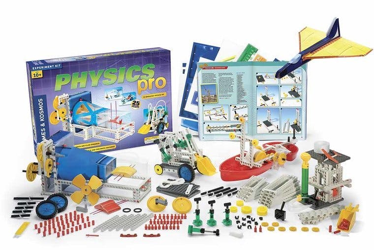 Een enorme set met allerlei uiteenlopende experimenten die je kunt maken en uitvoeren. In de doos vind je 212 onderdelen waarmee je 17 experimenten kunt doen. De meeste experimenten hebben betrekking op de combinatie van water en lucht. Je onderzoekt hoe lucht en water zich gedragen in verschillende omstandigheden, en door de modellen uit de handleiding te bouwen, ontdek je bijvoorbeeld waarom schepen blijven drijven en vliegtuigen in de lucht blijven.