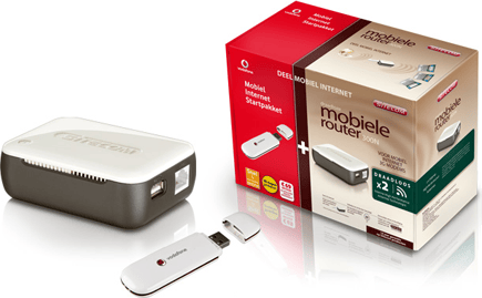 De Sitecom mobiele routerset bestaat uit een Sitecom WL-557 en Vodafone Mobiel Internet Startpakket inclusief usb-modem.