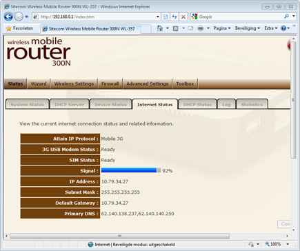 Status 3G-verbinding alleen via webinterface