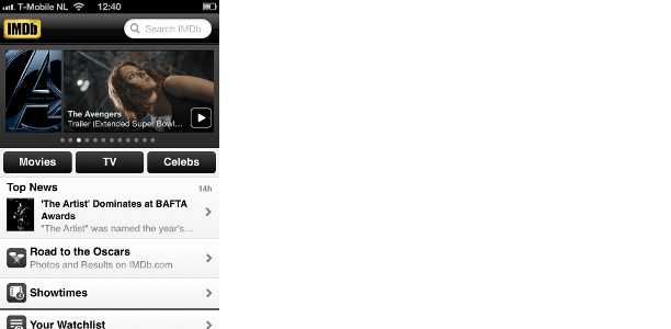 Wie gek is op filmtrailers, hoeft niet verder te kijken dan de beste en populairste bron voor films: de Internet Movie Database, oftewel IMDb. Er is ook een IMDb-app ontwikkeld voor Android en iOS (iPhone), waarin de zeer uitgebreide informatie op een wat gebruiksvriendelijkere manier op een mobiel scherm wordt gepresenteerd. Zoeken naar nieuwe trailers is niet nodig: deze verschijnen meteen boven in het scherm als u de app opstart. Door van rechts naar links te vegen komt u bij de volgende trailer terecht. Niet alleen nieuwe bioscoopfilms komen aan bod; er zijn duizenden trailers beschikbaar van oude, klassieke en bijna vergeten films. Vanzelfsprekend is IMDb ook een prima plek om recensies te lezen, filmnieuws te volgen en informatie over acteurs en regisseurs op te zoeken. Het is aan te raden om u te registreren en in te loggen. U kunt dan in de app bijhouden welke films u nog wilt zien en bijhouden wat u al hebt bekeken. Toch onthoudt de app ook bepaalde zaken als u niet inlogt. Zo kunt u onder Your History bekijken welke onderwerpen u onlangs hebt opgezocht. Bij de instellingen kunt u van 480p naar 720p (HD) schakelen, voor de maximale videoresolutie.
