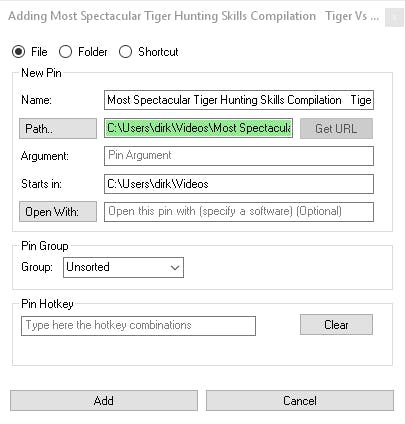 Aan iedere pin kun je hotkeys koppelen. Je moet het gebruik van hotkeys dan wel activeren in de instellingen. Zo’n sneltoets is de snelste manier om items te openen. Bovendien vind je in het venster New Pin de mogelijkheid om een koppeling in een groep onder te brengen. Er is echter geen knop New Group. In het vak Pin Group selecteer je gewoon de naam van de eerste groep en daarover typ je dan de naam van de nieuwe groep. Die nieuwe groep zal als extra tabblad in het hoofdvenster verschijnen. In het systeemvak kun je vanaf dan via de rechtermuisknop de snelkoppelingen per groep activeren.