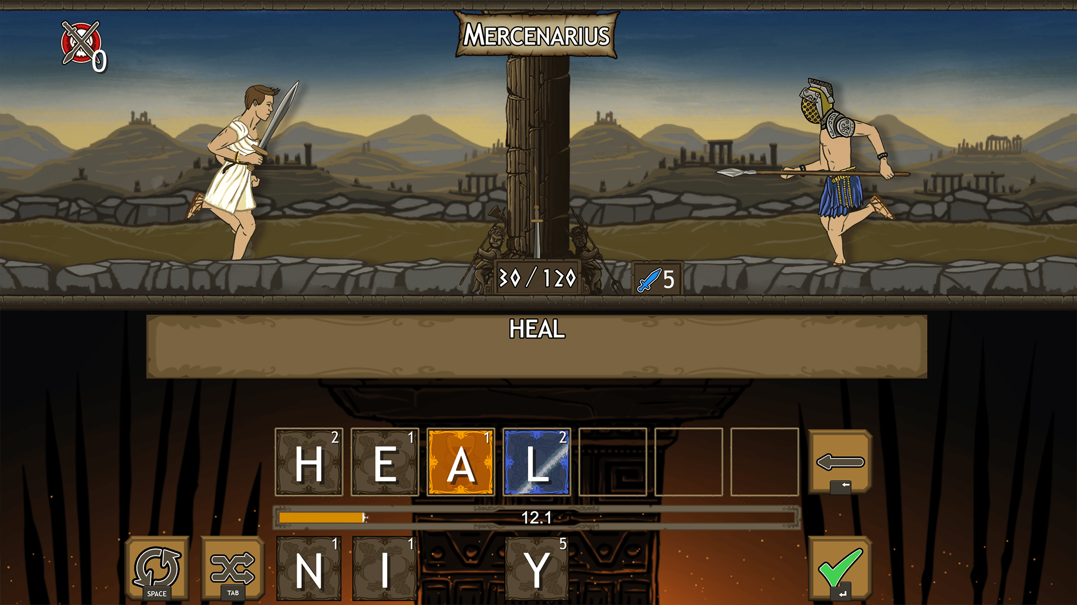 Ook God of Word is beschikbaar op Steam. Dit is de combinatie van een woordspel en een typegame overgoten met een episch sausje. Je speelt een jonge Griek die ten strijde trekt tegen demonen waarbij je zo snel en zoveel mogelijk woorden vormt met de letters die je ziet.