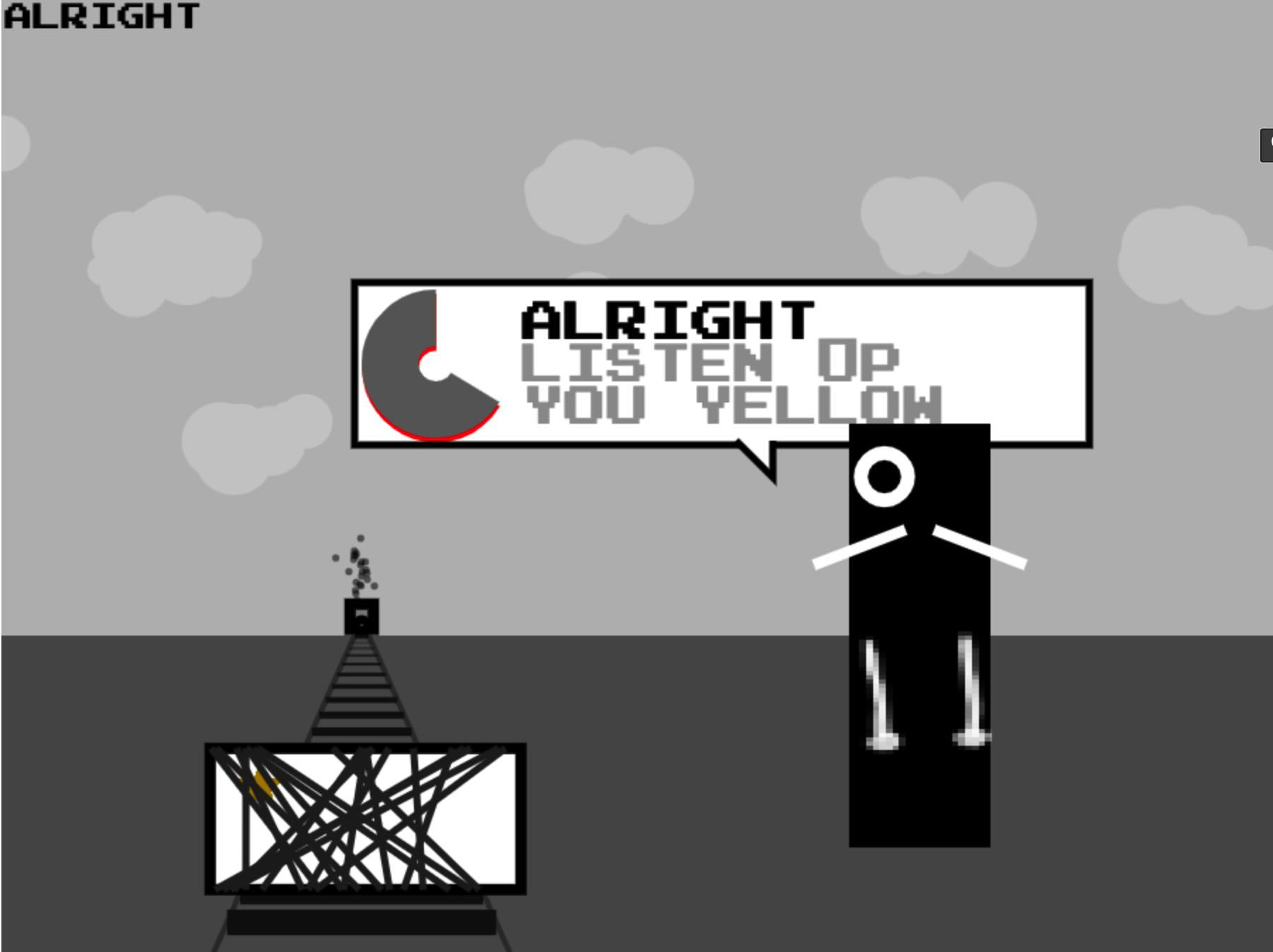 Pianogetokkel, een westernsfeertje en een minimalistische animatie zonder diepte, dat is de achtergrond van Monologue. Je hebt je vijand op een treinrails gelegd en houdt een overwinningsspeech. Of beter gezegd, je typt de toespraak. Je moet wel correct typen, want als je iets fout in het woord typt, moet je opnieuw bij de eerste letter van dat woord beginnen. Lever de laatste monoloog voordat de vijand ontsnapt.