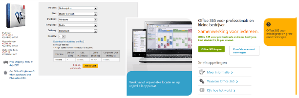 We bespreken in dit artikel twee bekende softwarefabrikanten die abonnementsvormen aanbieden: Microsoft met Office 365, en Adobe met diverse pakketten.