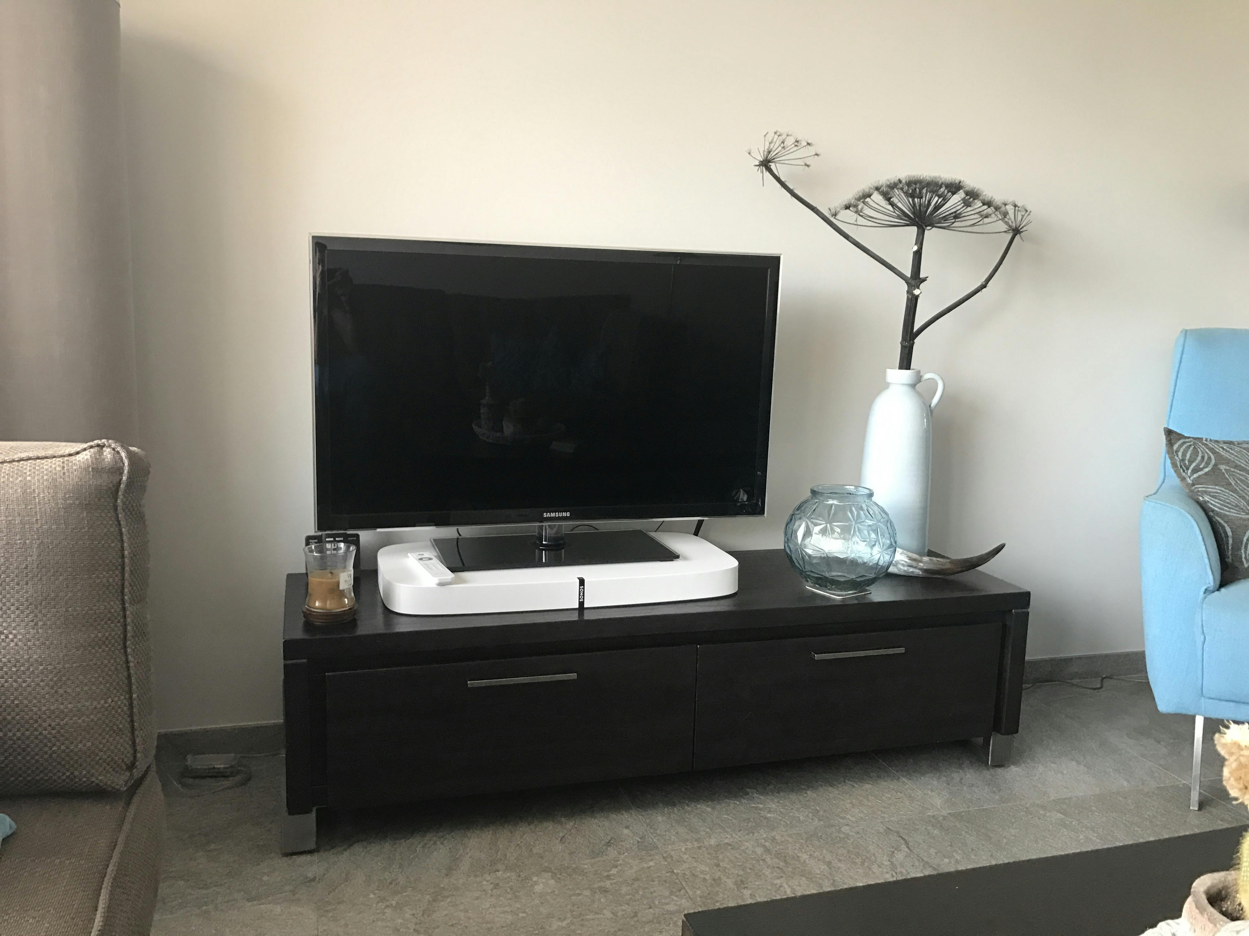 De meeste televisiemeubels zijn rechthoekig en de Playbase steekt met de ronde hoeken wel af met het meubel. Als je televisie ook nog eens een rechthoekig voetstuk heeft, voelt de vorm van de Playbase een beetje misplaatst aan.