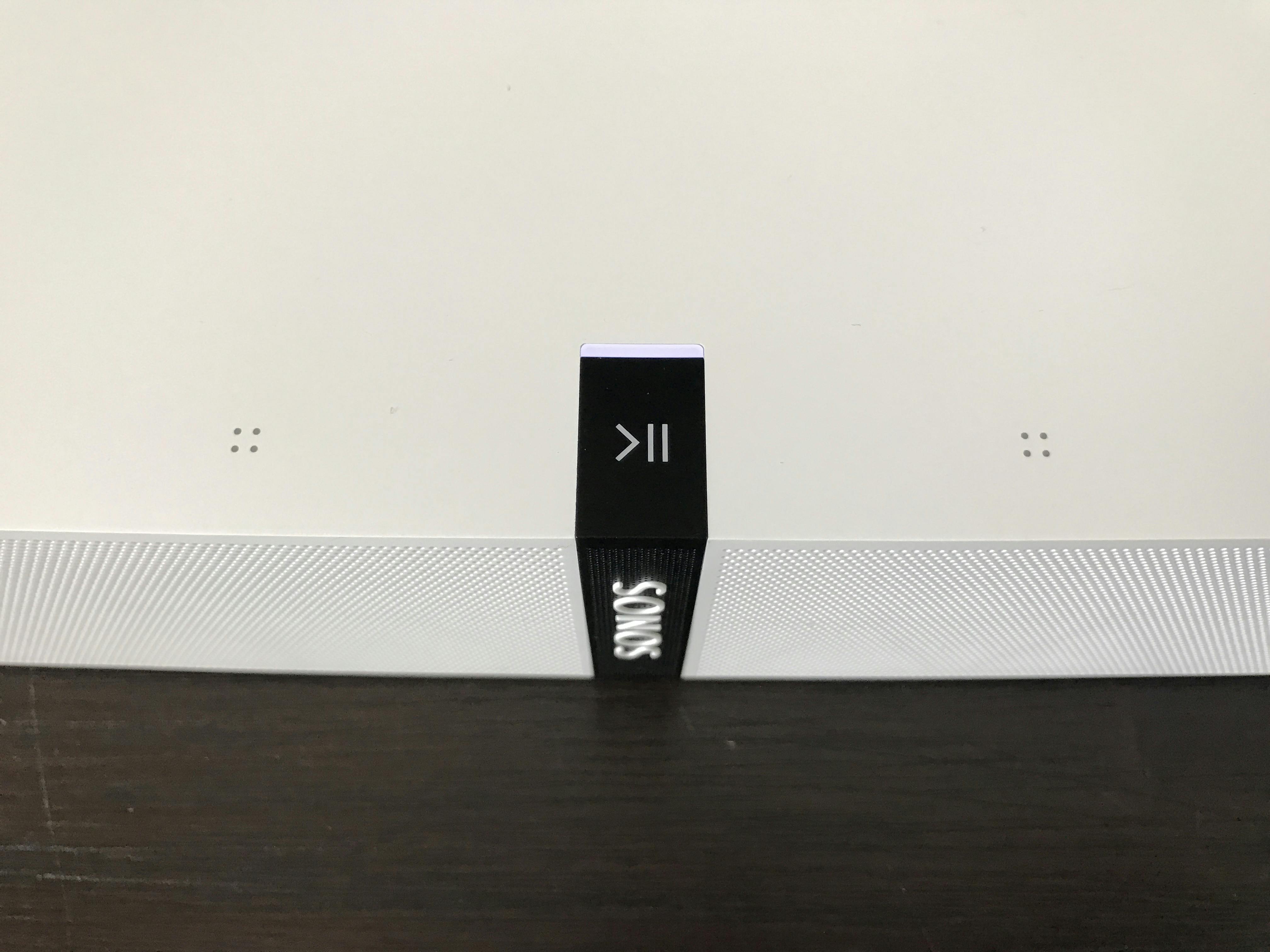 De Playbase heeft drie aanraakgevoelige knoppen. Twee voor volumeregeling en een knop die zowel als mute- als startknop dient. Bij het aanzetten van je televisie, schakelt de Playbase automatisch over naar het geluid van je televisie. Zo hoef je niet per se de app te openen om de juiste geluidsbron te selecteren.