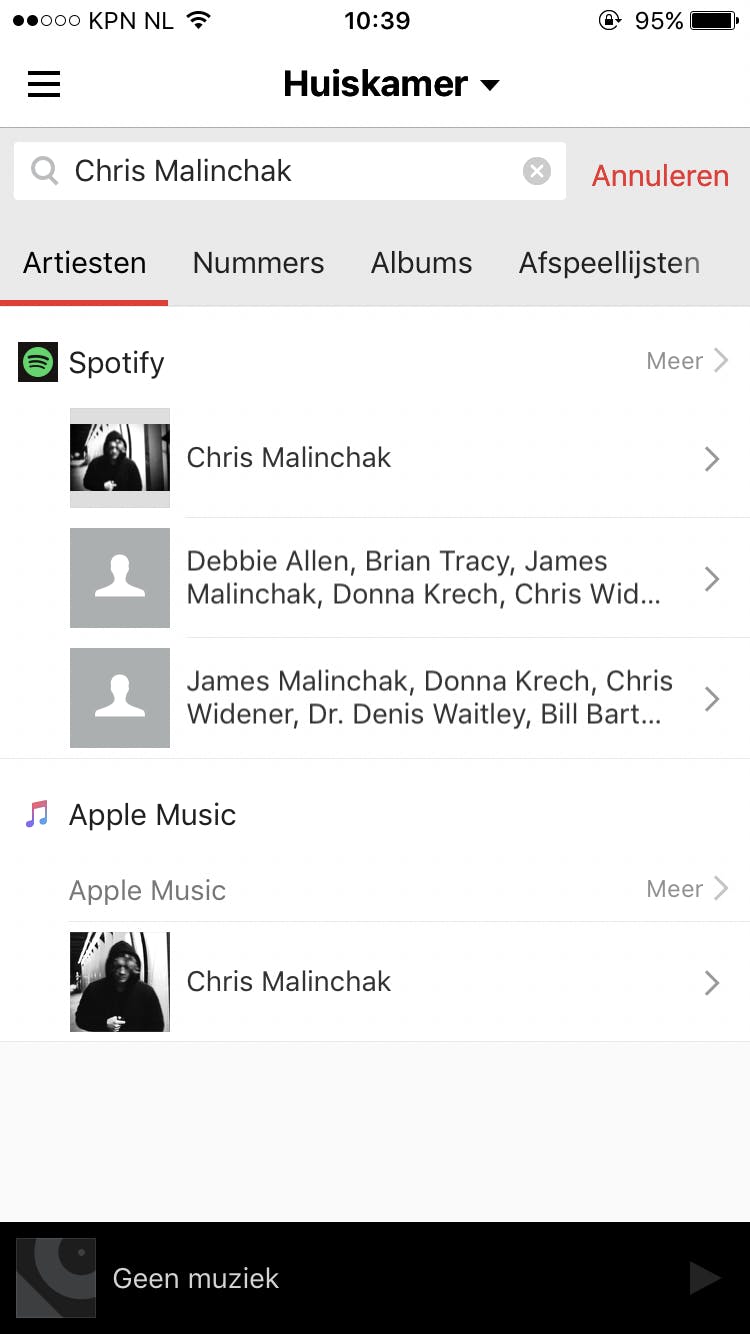 Wanneer je gebruikmaakt van meerdere streamingdiensten, zal je merken dat de Sonos-app zoekresultaten toont van alle diensten die je hebt gekoppeld. Een leuk extraatje, maar het aantal gebruikers dat zowel Spotify, Apple Music als TIDAL gebruikt zal niet enorm groot zijn.
