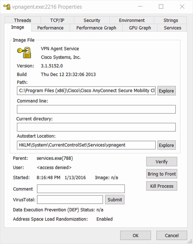 03 Op het Image-tabblad van een proces vind je veel extra informatie, zoals wanneer het gestart is, de mogelijkheid om het te verifiëren en de locatie waar gedefinieerd is om automatisch te starten (bij Autostart Location).