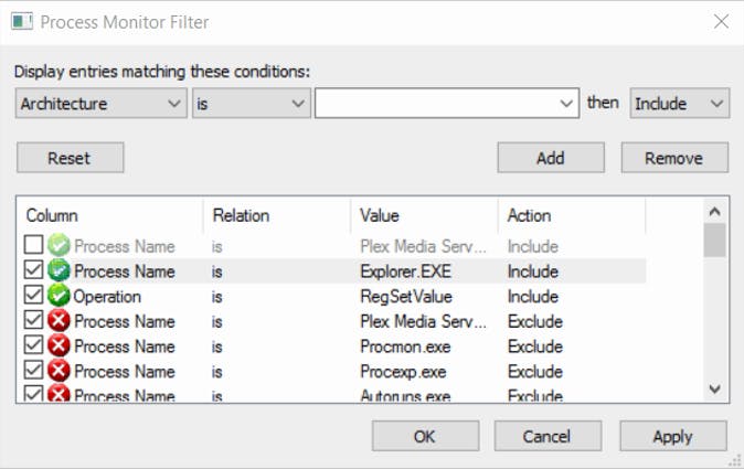 Het aantal problemen dat je kunt oplossen met Process Monitor is zeer groot, al bestaat daar niet zo maar een eenvoudig stappenplan voor. Wat kan helpen als je een probleem hebt, is om Process Monitor open te houden en zodra het probleem optreedt het loggen stop te zetten, door op File en Capture Events te klikken. Vervolgens kun je filteren door met de rechtermuisknop op de procesnaam of Operation te klikken en te kiezen voor Include om alleen events van dat proces weer te geven of met die operation. Klik op Exclude om events van dat proces weg te halen.