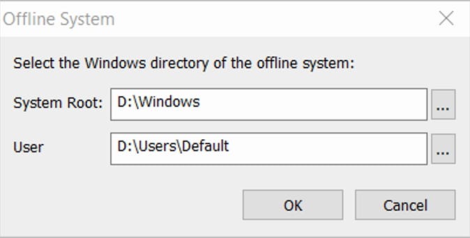 08 Om een offline systeem te analyseren, vul je even de locatie van de Windows-map in en het User Profile.