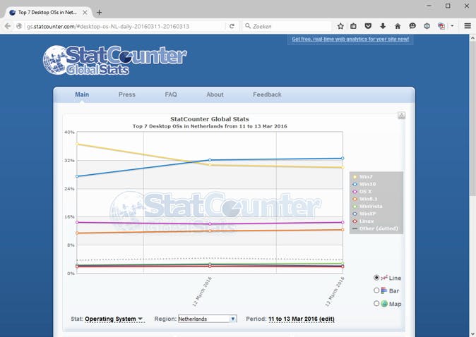 Op 12 maart 2016 had Windows 10 in Nederland meer marktaandeel dan Windows 7.