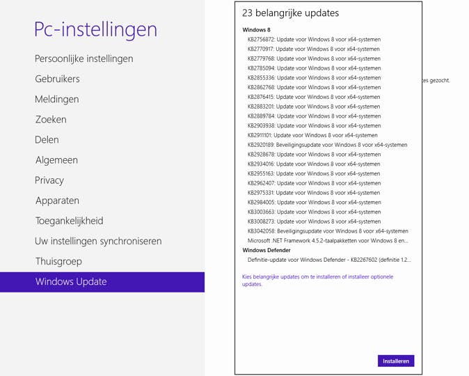De upgrade naar Windows 10 is een 'gewone' Windows Update met nummer KB3035583. Deze update installeert de Get Windows-app op de pc en begint ongemerkt zelfs de benodigde bytes te downloaden. Om te zien of deze update op de pc staat, ga je naar Start / Configuratiescherm / Systeem en beveiliging / Windows Update. Hier kun je de updates zien en ook zoeken. Zoek op het KB-nummer. Ontbreekt die nog, klik dan op OK / Naar updates zoeken en laat Windows net zo lang updates downloaden en installeren tot ook dit KB-nummer is geïnstalleerd.