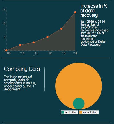 Experts bij Stellar Data Recovery hebben het jaar 2014 geanalyseerd. De nummer één oorzaak van kapotte smartphones is waterschade (35 procent), gelijk gevolgd door het besturingssysteem (35 procent). Gebruikersschade blijft ver achter met 8 procent. Dit geldt voor zowel particuliere gebruikers als zakelijke klanten. Uit regelmatig afgenomen enquêtes blijkt dat de IT-afdeling weinig controle heeft over de corporate data op mobiele apparaten. Dit is een aandachtspunt voor bedrijven in 2015, waarbij rekening moet worden gehouden bij back-ups en strategieën voor gebruik van mobiele apparatuur.