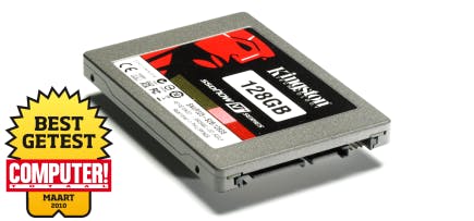 De Kingston SSDNow V+ Series 128 GB is een zogeheten Gen 2-model, een verbeterde uitvoering van de originele SSDNow V+ Series. Aan de verpakking is dit helaas bijna niet te zien. Alleen de productcode (die begint met SNVP325) geeft aan dat het om een Gen 2-model gaat. Iets om op te letten dus als u een Kingston SSD aanschaft! Wij hebben de SSD als Performance Upgrade Kit ontvangen. Hierin wordt de SSD gebundeld met alle accessoires die u nodig hebt om hem in een desktop of notebook in te bouwen. U krijgt beugeltjes om de SSD als normale 3,5 inch harde schijf in te bouwen, een SATA-kabeltje, een SATA-spanningskabeltje en een 2,5 inch externe schijfbehuizing om een normale notebookschijf in te bouwen. Tevens krijgt u een cd met software om een image van uw bestaande installatie te maken. De meerprijs van de kitversie is slechts 11 euro ten opzichte van een kale versie - een goede prijs voor de handige accessoires die u krijgt. De gebruikte controller in de Kingston SSDNow V+ is van Toshiba en biedt ondersteuning voor TRIM. De prestaties zijn vergelijkbaar met de andere SSD’s en prima in orde. De Kingston is bij het schrijven van 50 data verdeeld over bestanden van 512 KB zelfs het snelste in de test.