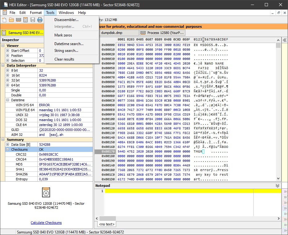 Start je HEX Editor op vanuit WSCC, dan moet WSCC als administrator uitgevoerd worden zodat HEX Editor zelf ook met alle rechten opstart. Houd er rekening mee dat je nu zomaar wijzigingen kunt aanbrengen in bestanden en op schijven, ook in delicate schijfgebieden als bootsectors.
