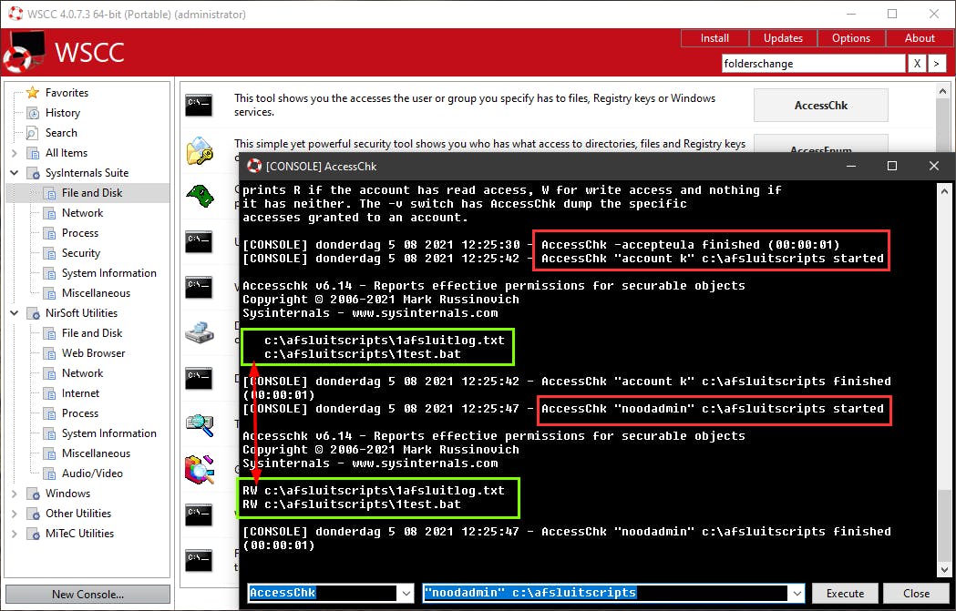 Ze zijn opgedeeld in rubrieken als Bestanden en schijven, Netwerk, Proces, Beveiliging, Systeem en Diversen. Lees telkens ook goed de downloadpagina’s na, want je vindt hier vaak voorbeelden, opdrachtregelparameters evenals allerlei aandachtspunten. Op de webpagina vind je tevens een downloadlink voor de complete suite. Helaas heeft deze geen eigen grafische interface.