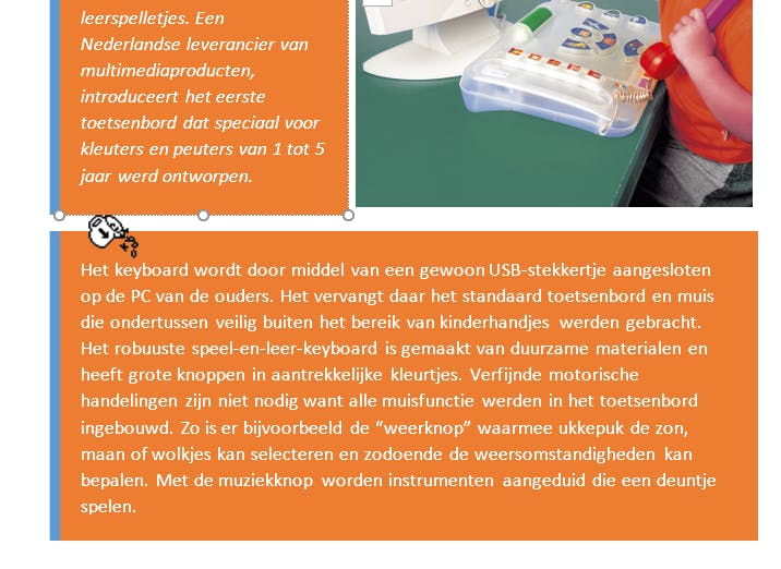 Wanneer je nu in het eerste tekstvak tekst typt die te lang wordt voor dit vak, zal deze automatisch doorlopen in het tweede vak. Je kunt doorgaan met het toevoegen van tekstvakken en ook een derde, vierde enzovoort koppelen.