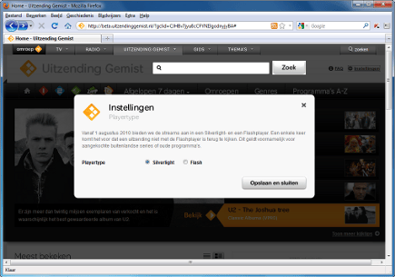 Filmpjes op Uitzending Gemist kunt u afspelen met Flash of Silverlight. Met de laatstgenoemde mediaspeler ondervindt u de minste problemen en kunt u alle programma's soepel bekijken. Bezoek de website Silverlight en klik bovenaan op Get Started. Kies aan de rechterkant voor de blauwe knop INSTALL NOW en voer het exe-bestand uit. Klik vervolgens op Nu installeren en wacht tot het proces is voltooid. Op de nieuwe website van Uitzending Gemist klikt u eerst rechtsboven op Instellingen, waarna u de optie Silverlight selecteert. Bevestig met Opslaan en Sluiten.