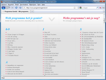 De lijst met beschikbare televisieprogramma's op www.uitzendinggemist.nl is erg lang!