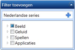 Veel televisieprogramma's worden geüpload naar downloadnetwerken. In nieuwsgroepen zijn veel series te vinden. Als u weet hoe deze downloadmethode werkt, downloadt u de bijbehorende freeware vanaf Spot-Net. U maakt gemakkelijk een categorie aan voor televisie-uitzendingen. Hierdoor ziet u snel welk materiaal er beschikbaar is. Klik aan de linkerkant op Filter toevoegen en vouw het onderdeel Beeld open. Klik vervolgens op Genres en plaats een vinkje voor TV Series. Het staat u natuurlijk vrij om ook andere genres bij de categorie te betrekken, bijvoorbeeld drama, cabaret of documentaire. Onder Taal geeft u eventueel aan dat u alleen geïnteresseerd bent in materiaal waarin Nederlands wordt gesproken of dat in het Nederlands is ondertiteld. Bedenk een geschikte naam voor de categorie en bevestig middels een klik op het blauwe plusteken.