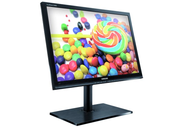 Samsung leverde ons twee schermen met zijn nieuwe PLS-paneel, een 24- en 27inch-uitvoering. De 27inch-uitvoering vindt u los terug in de rubriek Hardware (p. 84). PLS is de nieuwe techniek die Samsung heeft ontwikkeld als tegenhanger van IPS. Samen met de 27inch-uitvoering betreft dit het eerste beeldscherm dat gebruikmaakt van deze techniek. De PLS-techniek wordt ook gebruikt in de tablets Galaxy Tab 8.9 en 10.1. Eén van de speerpunten van de nieuwe techniek is de inkijkhoek en we moeten toegeven dat deze erg goed is. Het scherm heeft de beste inkijkhoek van de geteste schermen, er is nagenoeg geen verloop in kleur zichtbaar als we verticaal of horizontaal kijken. De kleurreproductie laat te wensen over als we het scherm direct uit de doos controleren. We zetten 'Magic Bright' op 'standard' en krijgen dan wel een redelijke kleurreproductie met een Delta E van 5,5. Dit is helaas niet zo goed als een aantal andere schermen uit de test. Wij maken voor de test gebruik van een preproductie-model. Samsung heeft ons verteld dat de standaard kleurreproductie van de schermen zal worden verbeterd. Na kalibratie van het scherm is de Delta E met 0,2 perfect. De zwartweergave is redelijk, maar komt niet in de buurt van de MVA-beeldschermen uit de test. Ook het contrast is minder dan dat van de IPS-panelen en helemaal vergeleken met MVA. Toch hebben wij dit niet als een storende factor ervaren. De beeldkwaliteit, zeker na kalibratie, is dik in orde. Het scherm heeft als extraatje vier usb3.0-poorten, handig voor wie daar al apparatuur voor heeft, want zoveel usb3.0-hubs zijn er nog niet. De monitor heeft een resolutie van 1920 x 1200. De S24A850D is een goede introductie van de PLS-techniek, vooral de inkijkhoek is indrukwekkend. De prijs is wat aan de hoge kant, maar na kalibratie is het een van de betere schermen uit de test.