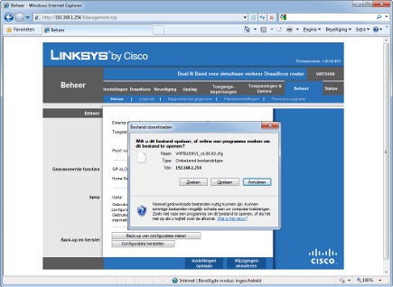 Linksys (en andere fabrikanten) biedt de mogelijkheid de configuratie van de oude router op te slaan, maar met het bestand valt verder weinig te beginnen als u het niet op dezelfde router wilt terugzetten.