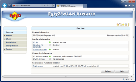 Een belangrijke factor in het gebruiksgemak van een draadloos netwerk is de reikwijdte en de sterkte van het signaal. Zeker in huizen met betonnen muren en vloeren kan het signaal van het draadloos netwerk snel verminderen tot het niet meer prettig te gebruiken is. Een 'wireless repeater' zoals de Fritz!Wlan Repeater kan een oplossing zijn. De repeater pakt het zwakke signaal van het draadloos g/n-netwerk op en zendt het versterkt weer uit. De configuratie van WLAN-repeater gebeurt door een computer draadloos te verbinden met het standaard-WLAN van de repeater, en daarna in te loggen op de webinterface van de repeater. De repeater speurt zelf naar draadloze netwerken en laat u daarna de draadloze netwerken selecteren die versterkt moeten worden. Belangrijk, en bij de Fritz!WLAN ontbrekend in de handleiding, is dat het MAC-adres van de Repeater moet worden opgenomen in het MAC-filter van de router. Door de filtering tijdelijk uit te schakelen kan deze via het overzicht van de DHCP-reserveringen worden gevonden en daarna toegevoegd. Het MAC-filter kan dan weer ingeschakeld worden.