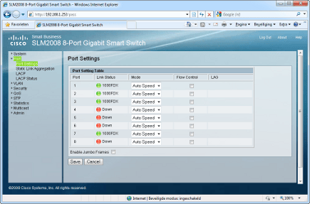 Het beste is om de poorten op een switch aansluitend te gebruiken, anders dus dan hier.