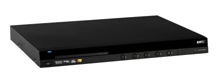 De Emtec Movie Cube D850H is eigenlijk een uit de kluiten gewassen dvd-speler. Het numerieke display en de afspeelknoppen aan de voorzijde bevestigen dit beeld. Er is dan ook daadwerkelijk een optisch station aanwezig waarmee u cd- en dvd-schijfjes kunt afspelen. Het is om deze redenen logisch dat Emtec heeft gekozen voor een standaardbreedte van 43 centimeter, waardoor de behuizing naadloos in uw stereomeubel past. Aan de zijkant bevindt zich een gleuf met daarin een 1TB-schijf van Hitachi (3,5 inch). Verder zien we alle bekende uitgangen om audio- en tv-apparatuur te koppelen. Achter een klepje aan de voorkant zit een kaartlezer en usb-poort voor externe datadragers. Als alternatief spreekt u tevens netwerkbronnen aan via de ethernetaansluiting. De ingebouwde DVB-T-tuner is in staat om free-to-air televisiezenders in uw omgeving te ontvangen en eventueel op te nemen. In Nederland stelt deze functie zonder smartcardlezer niet zoveel voor, omdat u alleen publieke kanalen uit de lucht oppikt. Het menu kan wel een metamorfose gebruiken, want die oogt een beetje spartaans met haar lelijke pictogrammen. De reactietijd is wel prima in orde, waardoor u vlot door mediabestanden bladert. Alle testbestanden verwerkt de Movie Cube D850H uitstekend, op flac-bestanden na: sommige werden wel afgespeeld, andere niet. Extra opties zijn een bittorrent-module, NAS-functie en enkele webdiensten.