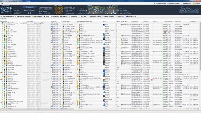 Je thuisnetwerk is vaak een wirwar van apparaten die zich overal en nergens in huis bevinden. Smartphones, tablets, laptops, mediaspelers en smart-tv’s, ze zijn allemaal aangesloten op het netwerk. Soms kan het handig zijn om een inzicht te krijgen in al die apparaten. Daar bestaan handige tooltjes voor. Zoals Slitheris Network Scanner. Deze software geeft uitgebreide informatie over alle apparaten die in je netwerk zijn aangesloten, zowel bedraad als draadloos. Van ieder apparaat kun je de technische informatie zien, zoals het mac-adres, ip-adres, wat voor besturingssysteem erop is geïnstalleerd en vaak ook wat het merk en model van het apparaat is.