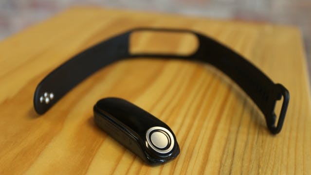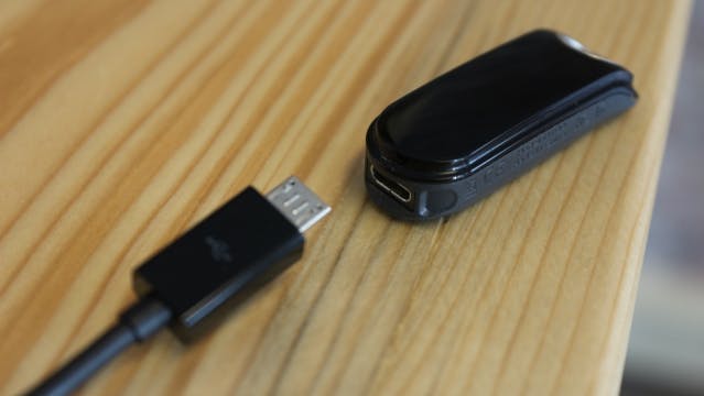 Je klikt de elektronica van de TomTom Touch als het ware in en uit het rubberen bandje. Wanneer je het uit het bandje hebt gehaald kun je het apparaat via een micro-usb-aansluiting opladen.