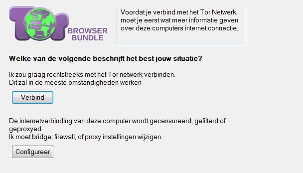 Tor Browser maakt rechtstreeks verbinding met het anonieme netwerk.