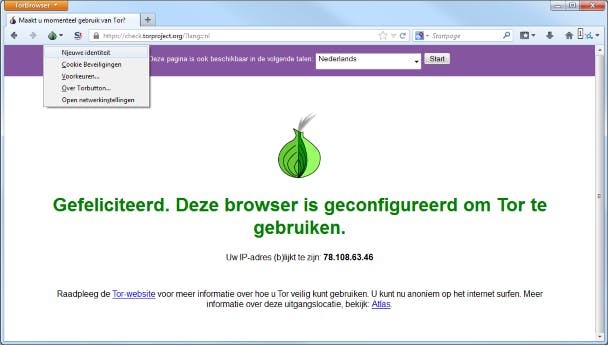 Fijn is dat Tor Browser geen software installeert op je systeem. Na het openen van het exe-bestand krijg je direct toegang tot het anonieme netwerk. Er verschijnt een browser op het scherm die erg vertrouwd aanvoelt. Dat is niet zonder reden, want Tor Browser is gebaseerd op de broncode van Firefox. Je surft nu onder een ander IP-adres dan gebruikelijk. Overigens wissel je op ieder moment van IP-adres door een andere identiteit aan te nemen. Opvallend is dat de plug-ins NoScript en HTTPS Everywhere standaard zijn geactiveerd. NoScript voert alleen JavaScript, Java en Flash van vertrouwde domeinen uit. Dankzij HTTPS Everywhere bezoek je websites automatisch via een versleutelde verbinding.