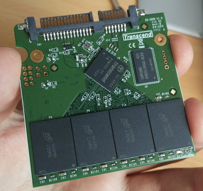 Ik heb de StoreJet uit nieuwsgierigheid ook even van binnen bekeken en zag een SSD-printplaatje met SATA-connector dat was aangesloten op een printplaatje met de Thunderbolt- en usb3.0-poorten. Voor wie het interessant vindt: de gebruikte controller is een Transcend TS6500. Deze controller wordt ook gebruikt in Transcends SSD370-productreeks. Vermoedelijk lijkt de SSD in de StoreJet 300 qua specificaties dus veel op deze normale SSD.