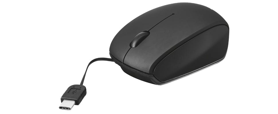 Zo komt Trust met een 'minimuis' met usb type c-aansluiting (en intrekbaar snoer), als ook een cardreader voor extra snelle bestandsoverdracht.