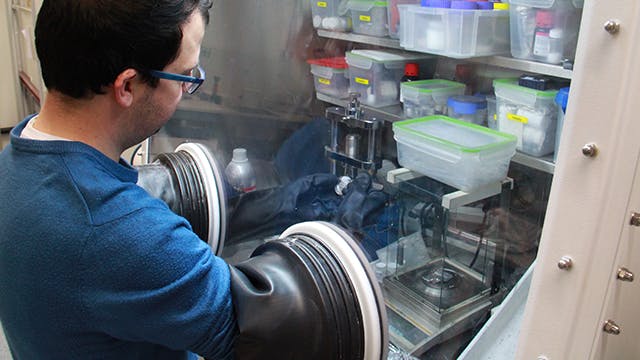 Op deze afdeling werken een kleine dertig personen aan de toekomst van batterijtechnologie. Er werken hoogleraren, afstudeerders, postdocs en onderhoudsmedewerkers. Wagemaker (te zien in bovenstaande afbeelding) is één van hen.