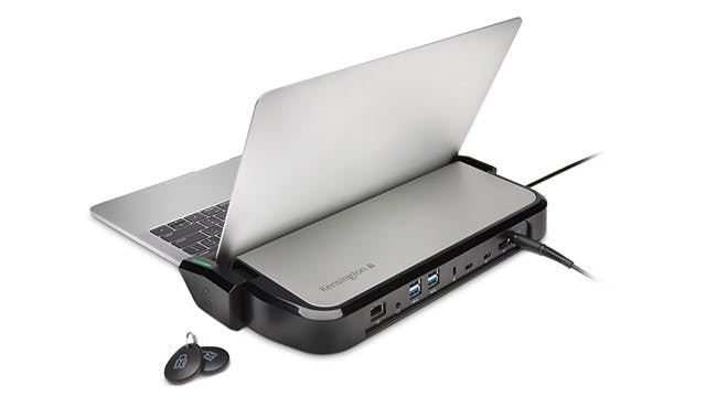Het voordeel van zo’n dock is dat je alle randapparatuur op het dock aangesloten laat. Zodra je thuis komt, hoef je alleen je laptop op het dock aan te sluiten en het voelt alsof je op een desktop-systeem werkt.