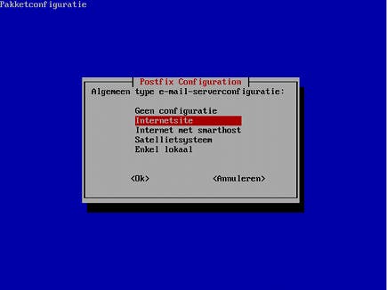 Postfix installeren gaat eenvoudig. Typ gewoon het commando sudo apt-get install postfix in op uw Ubuntu-server. Naast de installatie voert dit commando ook onmiddellijk de basisconfiguratie van Postfix uit, u moet dan ook twee vragen beantwoorden. Kies in het eerste venster als type Internetsite. Daarna vult u de volledige domeinnaam van uw mailserver in. Voor het e-mailadres koen@voorbeeld.nl is dit dus voorbeeld.nl. De Postfix-server wordt hierna opgestart.