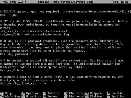Mensen kunnen mailen naar de mailserver, maar u moet deze mails wel kunnen ontvangen. We installeren IMAP- en POP3-support van Dovecot met sudo apt-get install dovecot-imapd dovecot-pop3d. Kijk of in het bestand /etc/dovecot/dovecot.conf de regel protocols = imap imaps pop3 pop3s staat. IMAPS staat voor IMAP over een TLS-verbinding, POP3S doet hetzelfde voor POP3. We moeten Dovecot hiervoor nog configureren, voeg het volgende aan het configuratiebestand toe: ssl_cert_file = /etc/ssl/certs/server.crt en ssl_key_file = /etc/ssl/private/server.key. Herstart hierna Dovecot.
