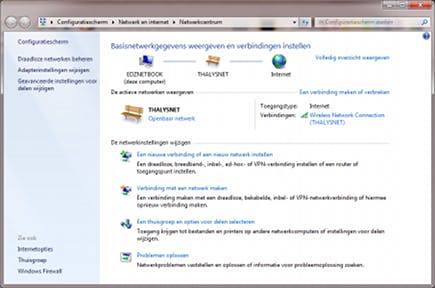 Wilt u een netwerk waarmee u al verbonden bent een andere status geven, open dan via Start, Configuratiescherm het Netwerkcentrum. Kijk daar bij de Actieve Netwerken. Daar staat het netwerk genoemd waarmee u nu verbonden bent. Direct onder de naam van het netwerk staat de huidige kwalificatie, zoals Thuisnetwerk, Bedrijfsnetwerk of Openbaar netwerk. Thuisnetwerk gebruikt u alleen wanneer u ook echt op het door u beheerde, vertrouwde eigen netwerk zit. Bedrijfsnetwerk beschermt uw computer al iets meer. Gebruikt u een onbekend netwerk buiten uw eigen huis, kies dan voor maximale beveiliging door het aan te merken als Openbaar netwerk.