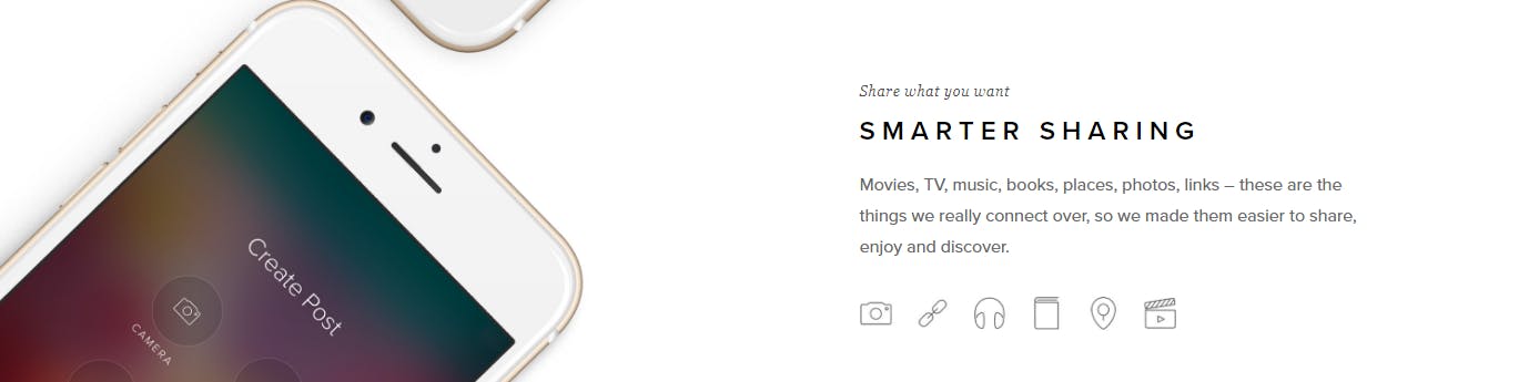 Vero vergelijken met Instagram is eigenlijk niet helemaal eerlijk. Waar Instagram namelijk alleen met foto’s en video’s te maken heeft, doet Vero iets meer. Het biedt namelijk de mogelijkheid om meer te delen: muziek, linkjes, film, series, boeken en plekken. Kortom: zit jij in een restaurant te eten dat je enorm waardeert, dan hoef je niet altijd een foto van je eten te maken om mensen te laten weten dat je er blij mee bent. Of als jij een artikel leest dat je kunt waarderen, dan kun je die binnen Vero delen.